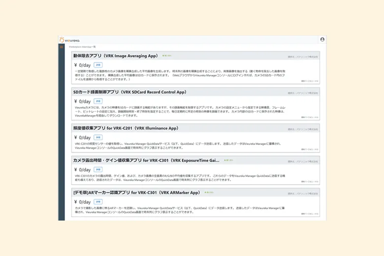 上記アプリはVieureka Manager QuickDataに対応しているためカメラ側・クラウド側両方とも開発無く、検証可能です。